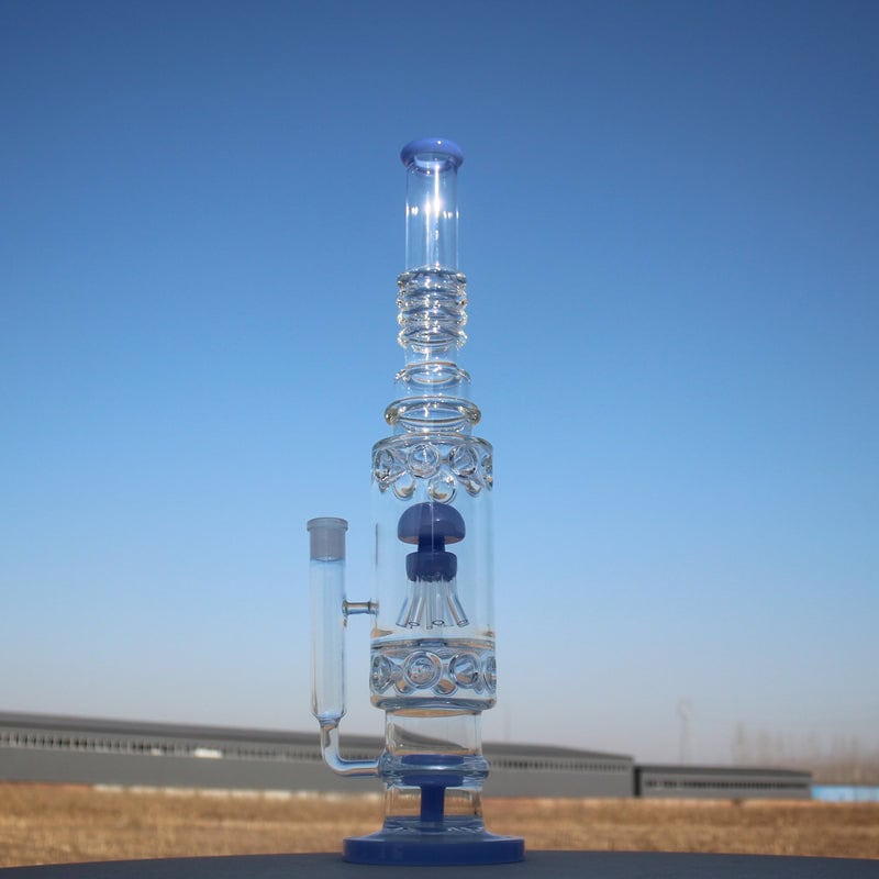 This water pipe, known as the Jelly Fish pipe, features a uniquely designed jellyfish sprinkler percolator at its center. The percolator’s tentacle-like appearance adds a playful touch to the efficient matrix and sprinkler dual percolators that work together for a smooth smoking experience. Plus, the upper portion of the tube has a multi-prong ice catcher, perfect for stacking ice cubes and chilling your smoke.